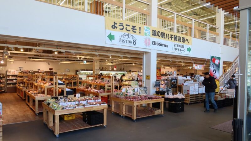 次に紹介するのは、長野県佐久穂町にある「道の駅八千穂高原」。中部横断道の八千穂高原インターを降りてすぐの場所にある、今年の9月にオープンしたばかりの新しい施設です。コンビニも併設されているので、早朝や深夜でも買い物できるのがうれしい点です。