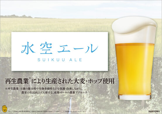 サントリーは、環境に配慮した商品開発を進める中で、再生農業原料を使用した初めてのビール水空エールを発表します。このビールは、農業による温室効果ガス(GHG)排出削減に貢献する再生農業を支援するため、大麦やホップを再生農業で栽培した原料で作られています。