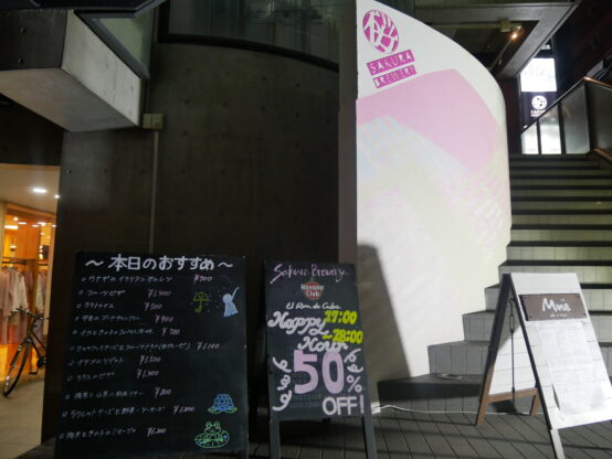 駅前は静かな雰囲気ですが、少し歩くとこじんまりとした居酒屋やバーなどが並ぶ歓楽街があります。Sakura Brewery Craft Beer & Foodには徒歩7~8分で到着します。