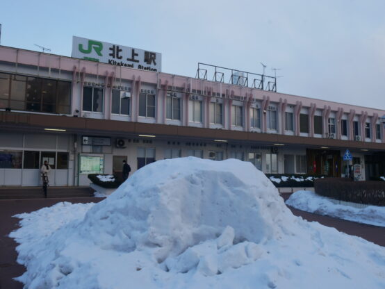 向かったのは小雪の舞う寒い日の夕方。17時の開店直後を狙って北上駅に到着しました。