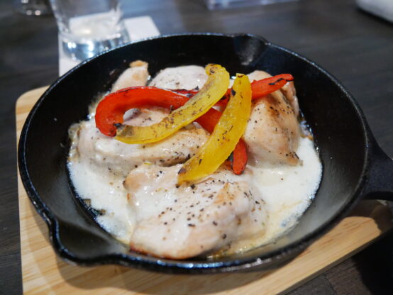 フードは早く出てくる枝豆やナッツから、ソーセージの盛り合わせやフィッシュ&チップスなども。この日私が頼んだのは、奥州いわいどりのチキングリル(980円)。柚子胡椒がきいたクリームソースと鶏がとてもよく合っていて美味しくいただきました。