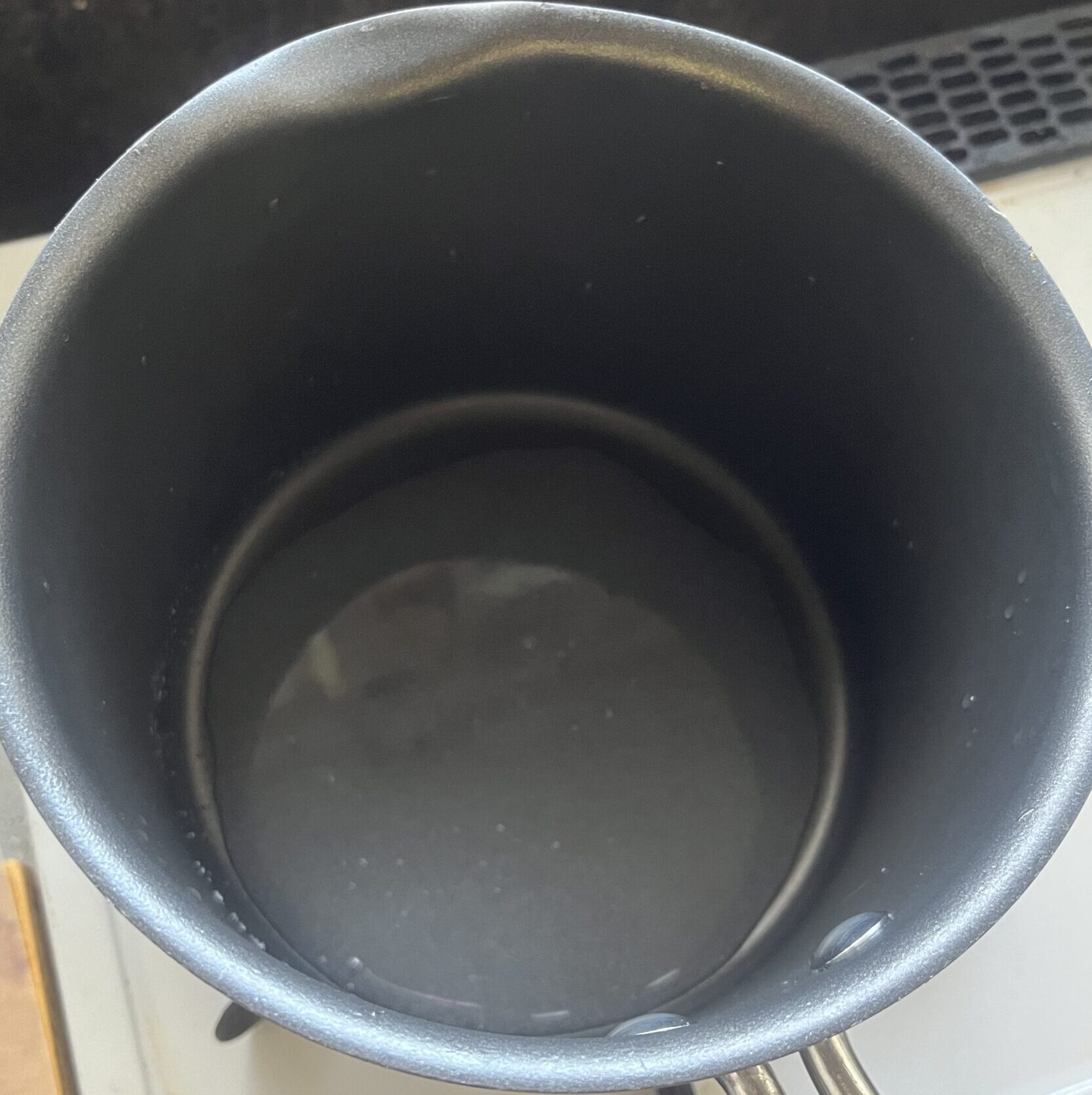 - 鍋にカラメルソース用のグラニュー糖と水を入れ、全体に湿らせる。