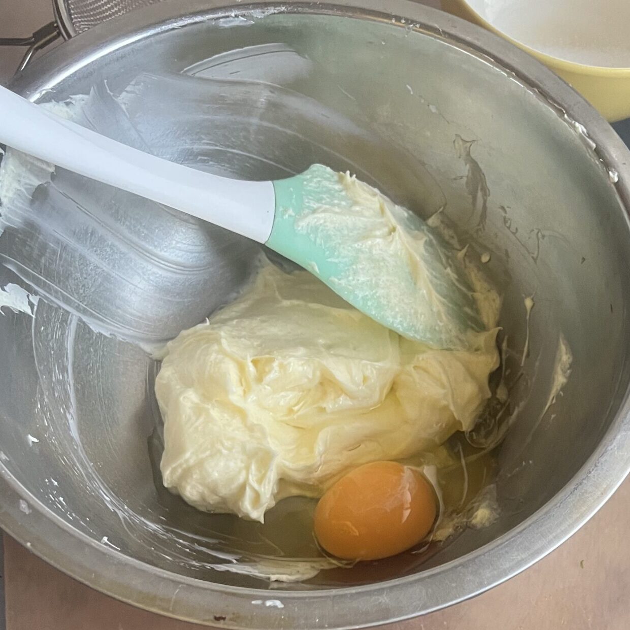 - ボウルにクリームチーズと砂糖を入れ、よくすり混ぜる。
