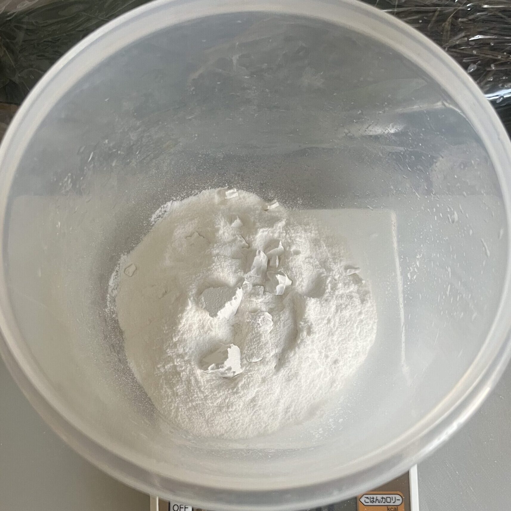 - ボウルに上新粉、葛粉、砂糖を入れ、泡立て器でよく混ぜる。