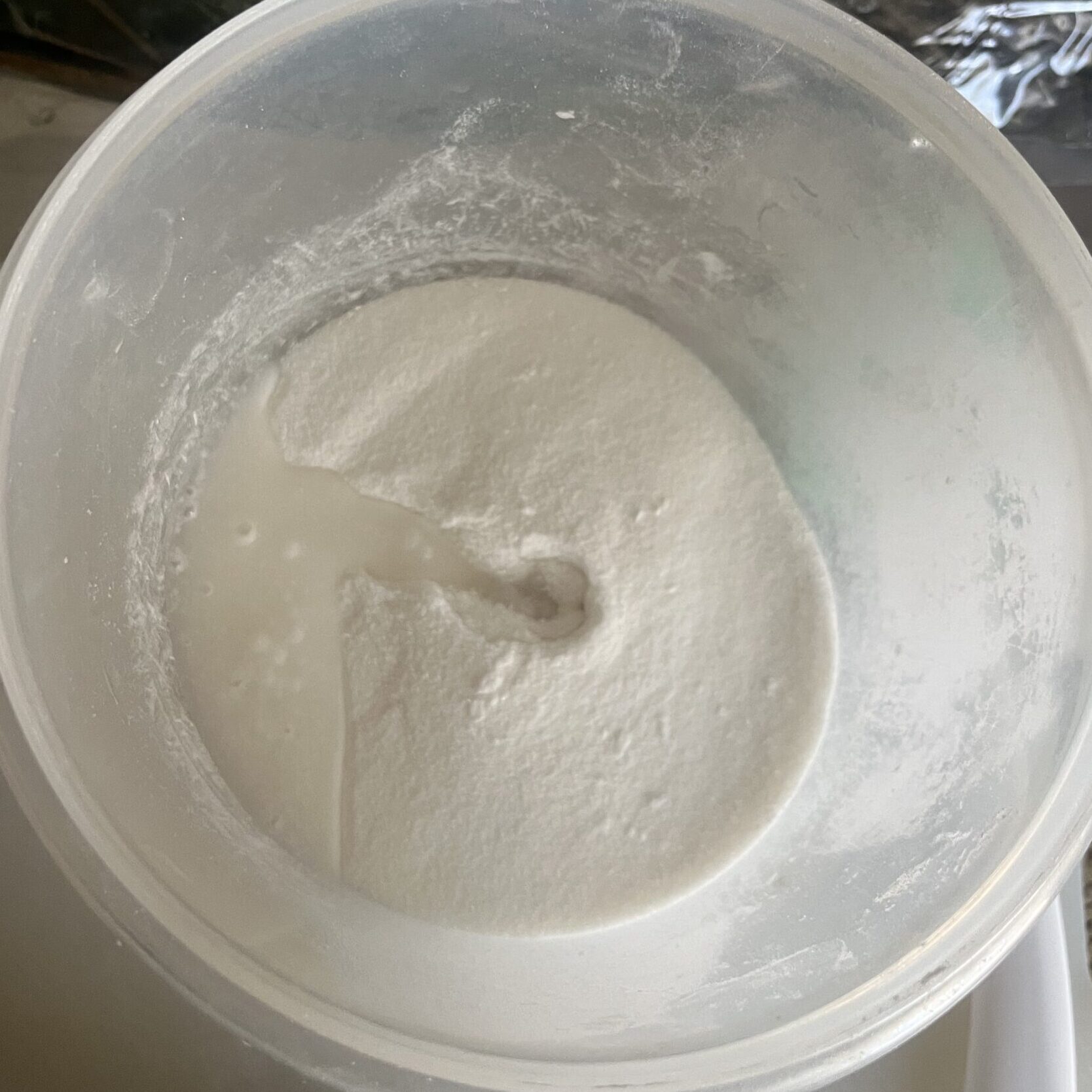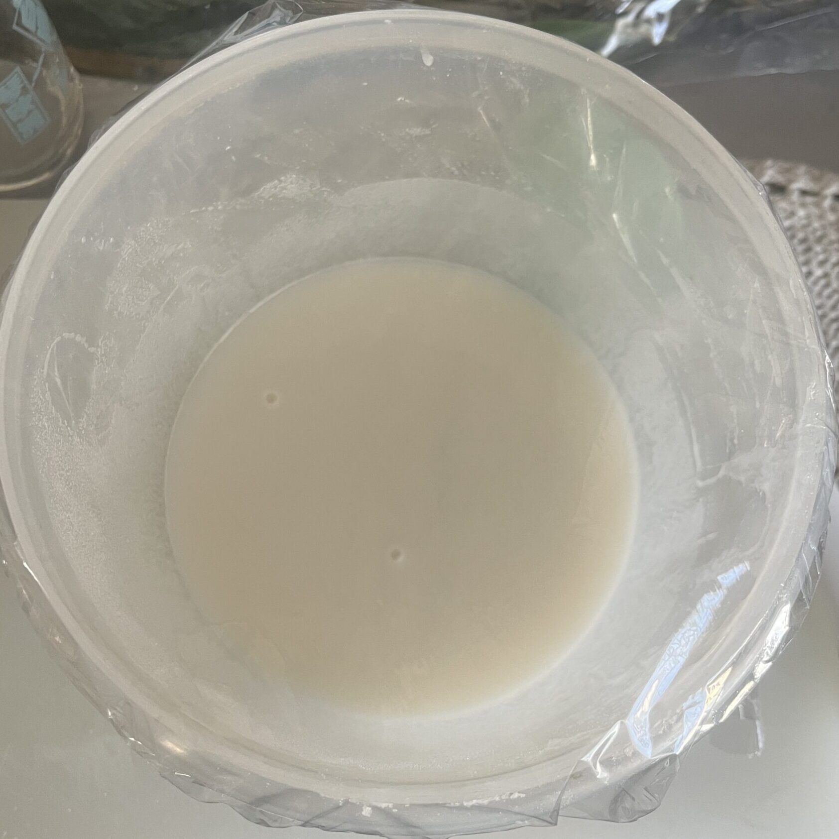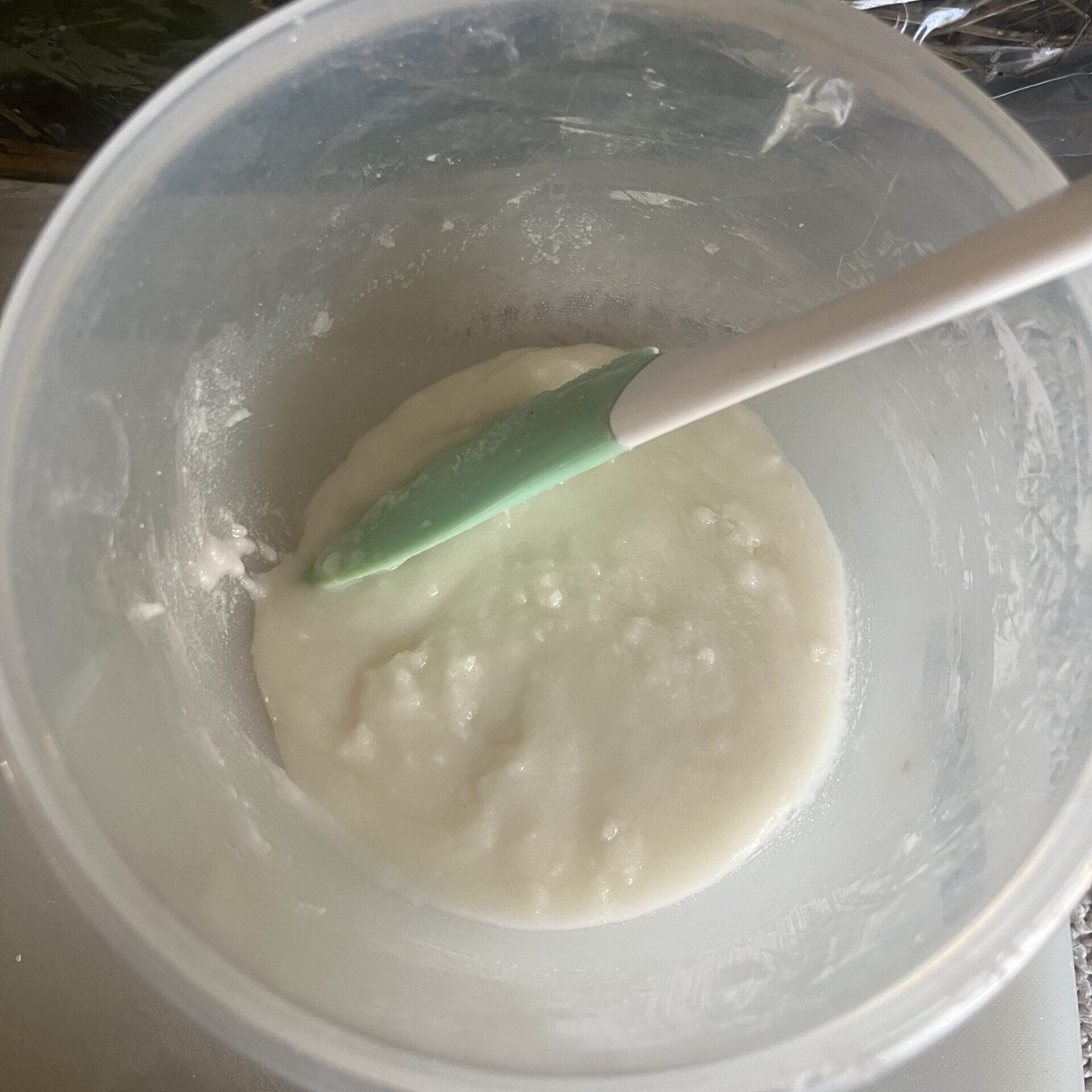 - 水を少しずつ加え、ダマにならないようよく混ぜる。