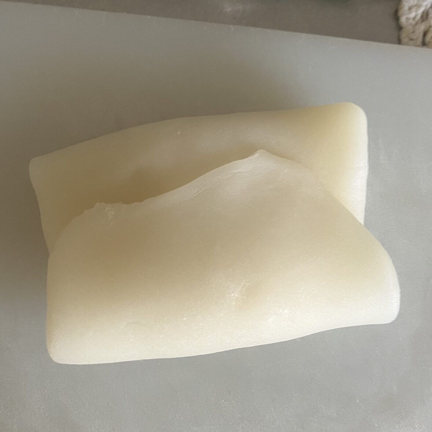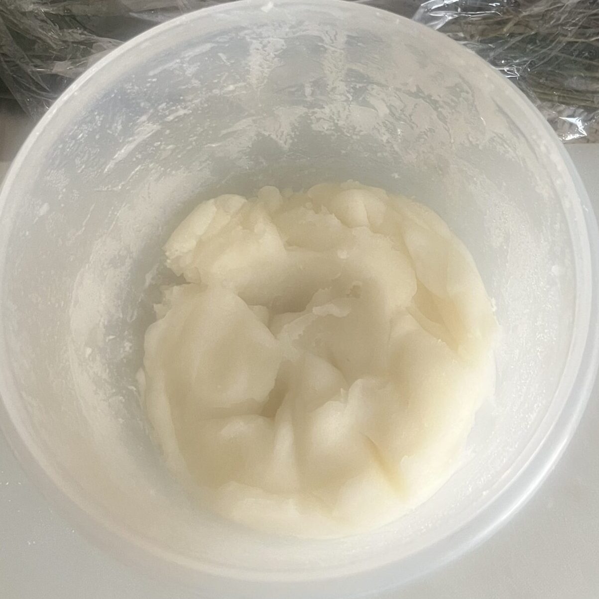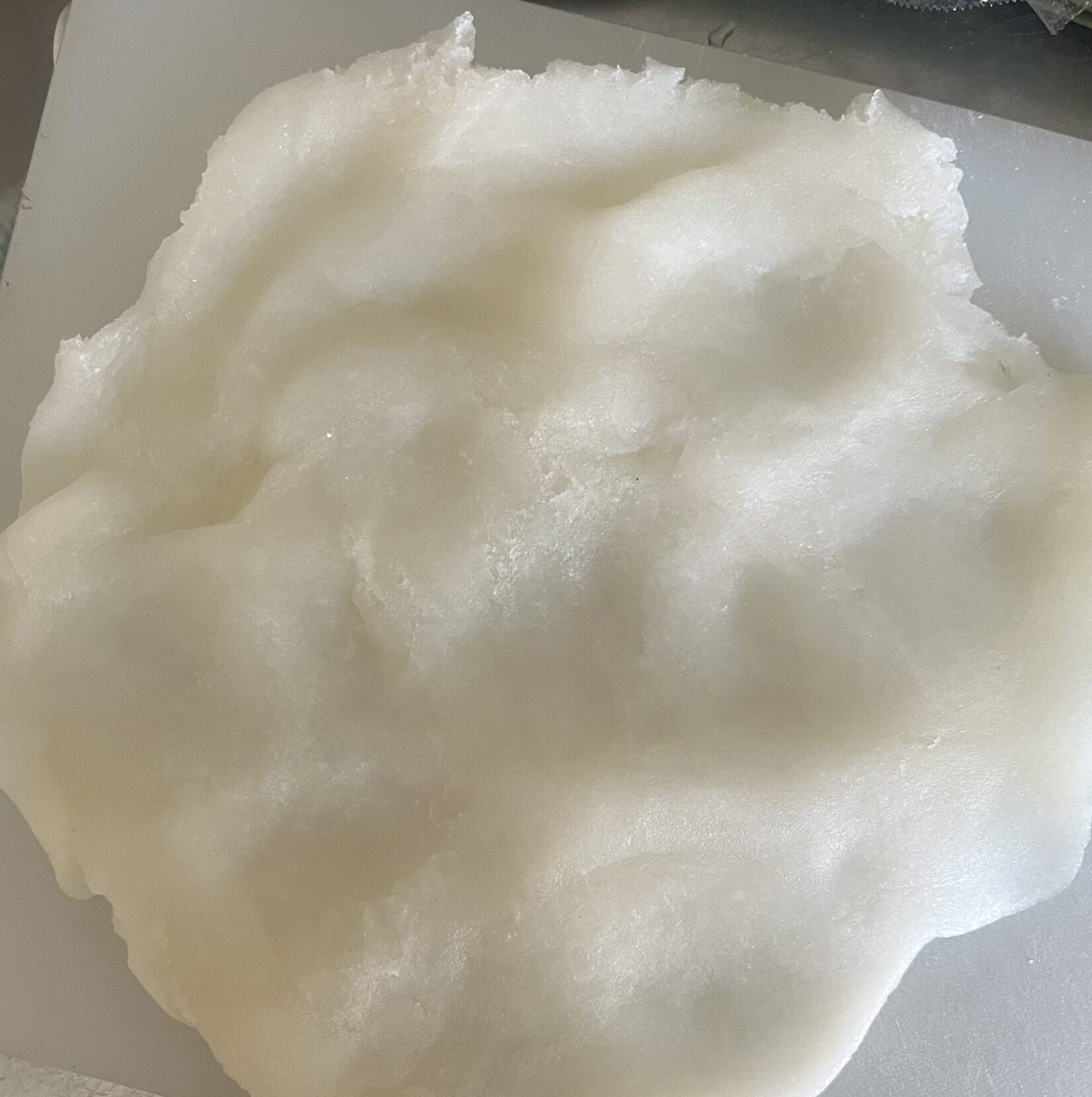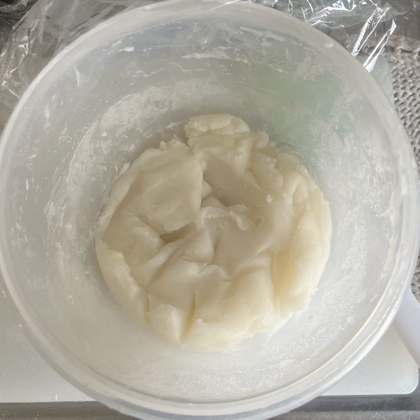 - まな板にあけ、透明感が出るまでヘラでこねる。(火傷に注意!)