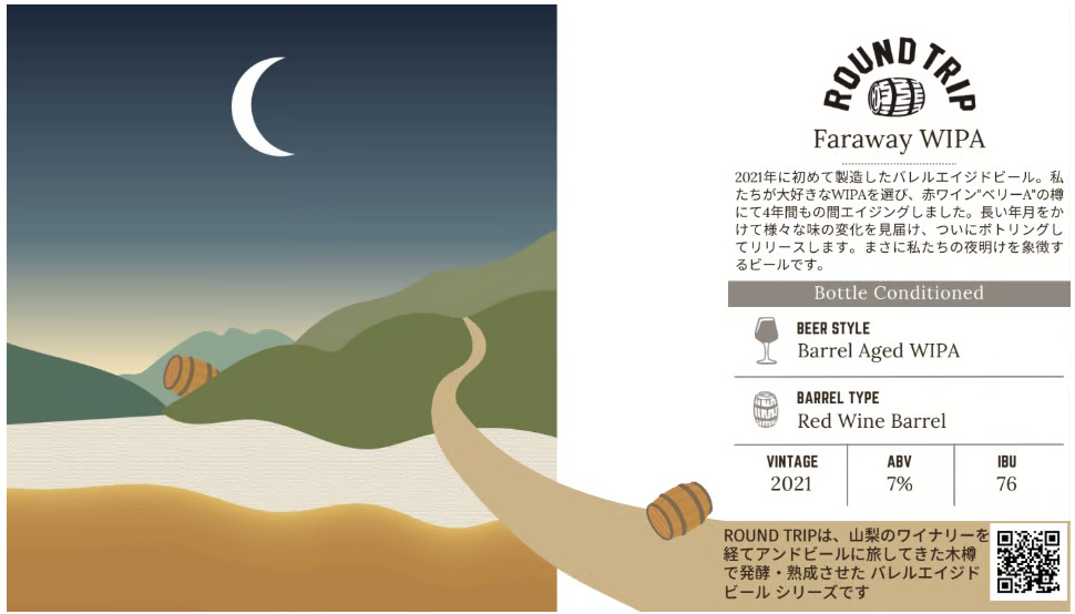 アンドビールから、バレルエイジドシリーズ”ROUND TRIP”の第4弾となるビール「Faraway IPA」がリリースされました。4年間赤ワイン樽で熟成させたWIPA。ぜひ味わってください。