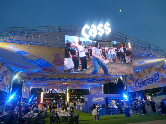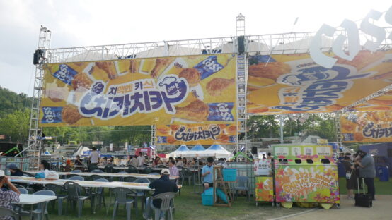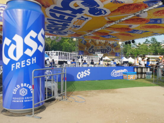 大きく目立つのは韓国の定番ビールCASSの文字。この広場のビールはほぼCASSが仕切っているようでした。