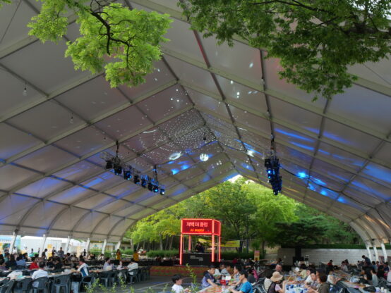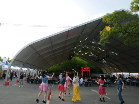 この会場で意外だったのは、早めの時間に行ったこともあってか、年齢が高めの方々もけっこう来ていたことです。韓国のビールシーンは、お店でもイベントでも20~30代の方々がほとんどなので、とても珍しく感じました。さらに、ステージが始まると若者だけでなく、ノリノリで踊っている年配者も。今まで行った韓国のビールフェスティバルでは見られなかった光景です。