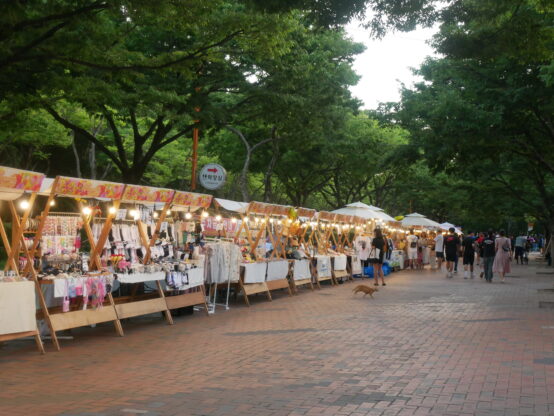 それぞれのスペースが余裕を持って設営されていて公園内の道路も広いので、来場者が多くても混雑でどうしようもない感じはまったくありません。車いすで来ている方も何名か見かけましたし、ベビーカーを押した家族連れも多かったです。