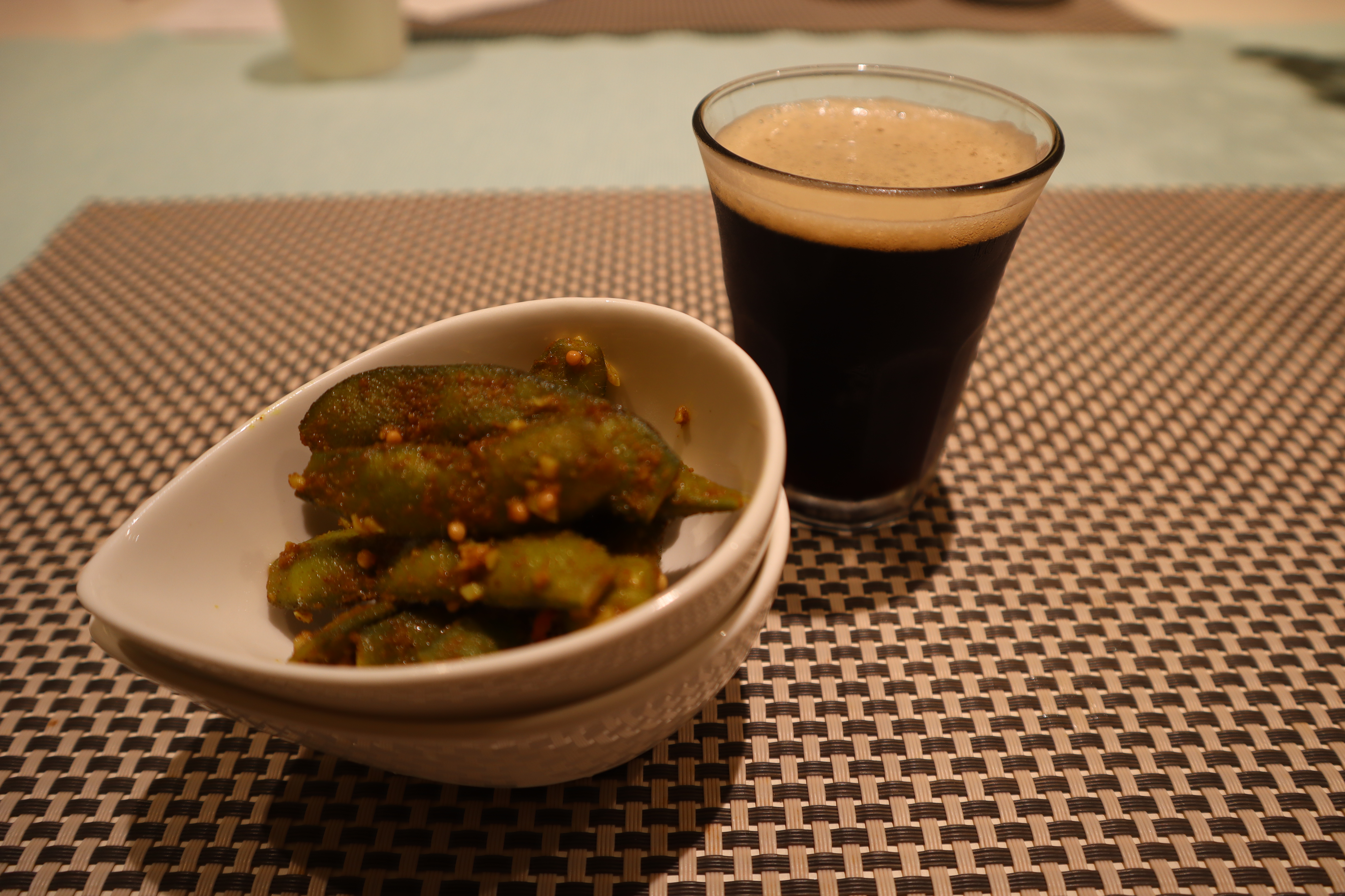 普通の枝豆も美味しいですが、このスパイシーな味付けの枝豆のおかげで軽くてドライな黒ビールが進みます。