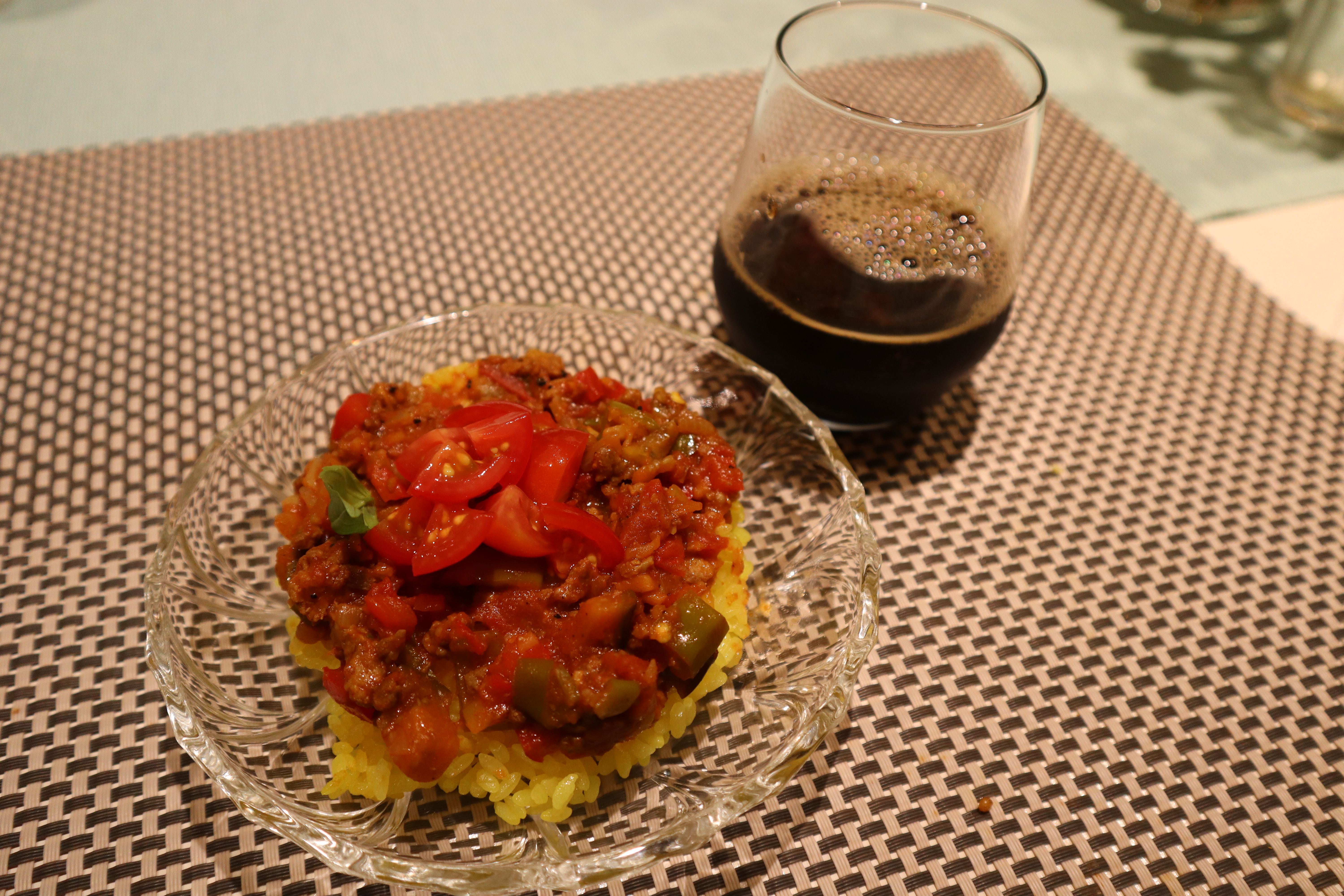 こちらビールに合わせる酒肴は「夏野菜のドライカレー」。