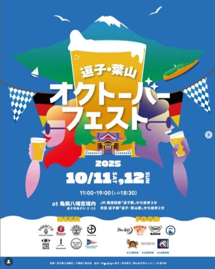 神奈川県逗子市にある、「亀岡八幡宮」の境内で「逗子葉山オクトーバーフェスト2025」が10月11日(土)・12日(日)に開催される。