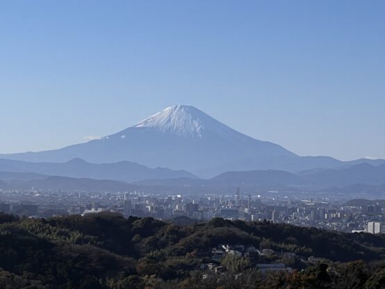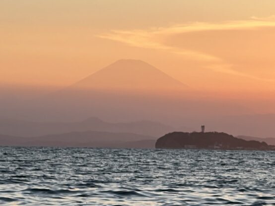 天気が良ければ逗子の海岸から江の島と富士山が望むことができる。