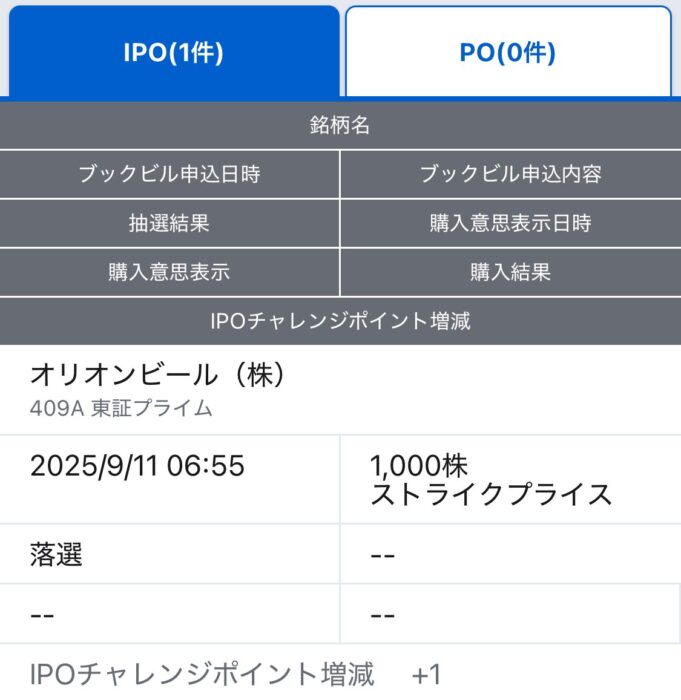 販売株数が多いと聞いていたし、ストライクプライスだし、まあ当選できるんじゃないかと根拠なく思っていたのですが、まったく甘かったです。