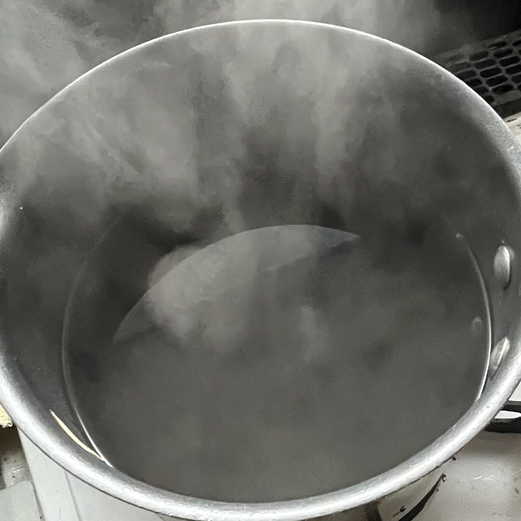 - ボウルの底が熱くなったら鍋から外し、電動泡立て器でしっかりと角が立つまで泡立てる。