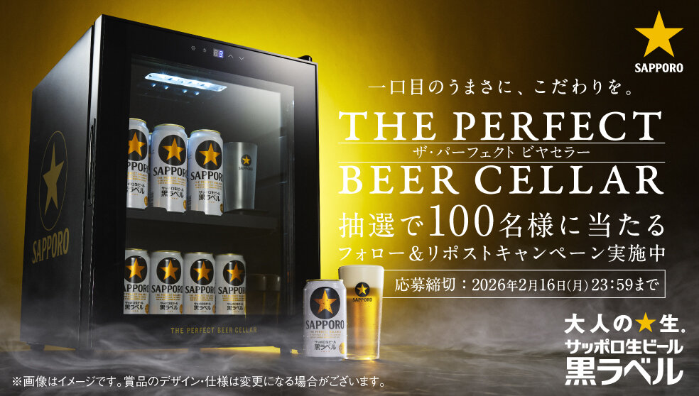 ’家でも完璧な生ビール体験をしてほしい’ーそんな思いを込めたキャンペーン「THE PERFECT BEER CELLAR」プレゼントキャンペーンが〜2/16(月)23:59までXで実施中だ。黒ラベル缶はもちろん、同時にグラスも冷やせるので、黒ラベルおすすめの適温で家で贅沢なビールタイムを楽しめる贅沢なセラーと三度注ぎで、パーフェクトな『サッポロ生ビール黒ラベル』を楽しめそうだ。
