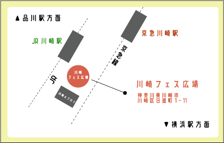 会場はかわさき駅前広場。JR川崎駅から徒歩2分、京急川崎駅から徒歩5分という好立地で、入場は無料。雨天決行(荒天中止)というのも頼もしいポイントです。