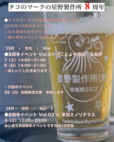 埼玉県川口市榛松にある小規模クラフトビール醸造所、星野製作所(麦) が、2026年3月27日で8周年を迎えます。