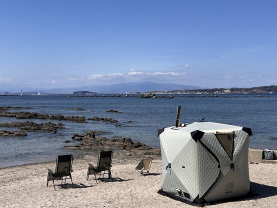 3月のある日、神奈川県・葉山の海仲間でサウナテントとBBQの会を開催しました。