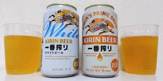 写真は、発売直後にオリジナルの一番搾りと飲み比べた時のもの。どこかオリジナルに似た感じがあるものの、ホワイトビールは苦みや麦芽のコクが控えめで、ほんのりスパイスっぽい香味もありました。