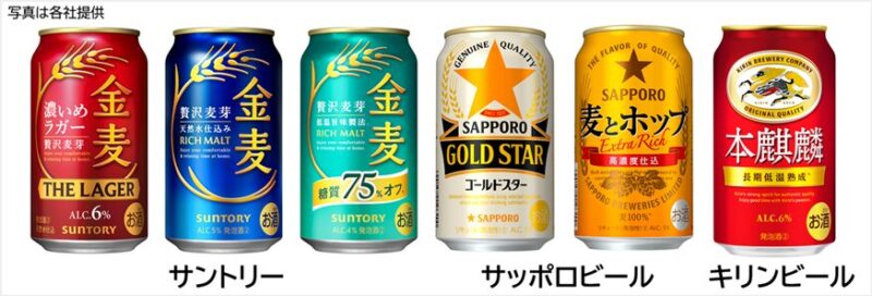 ※サントリーはウイスキーなどビール以外の検索も多いため割愛