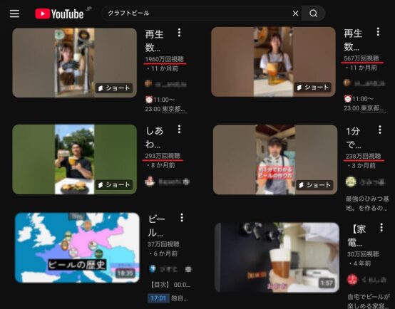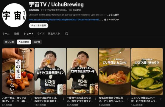 ちなみにYouTubeで発信しているブルワリーや店舗は少なく、目立ったのはUCHU BREWINGの「宇宙TV」でした。