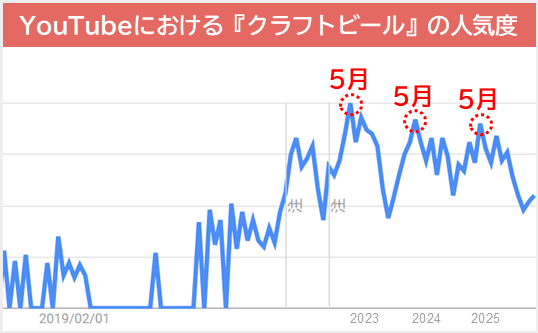 なおYouTubeではクラフトビールという検索が過去3年、決まって5月に伸びていました。
