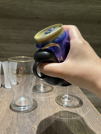 装着感はこんな感じです。実際は7~8割ぐらいビールを注いでから、神泡サーバーを缶の注ぎ口の下に押し当て、ボタンを押して神泡を作り出します。