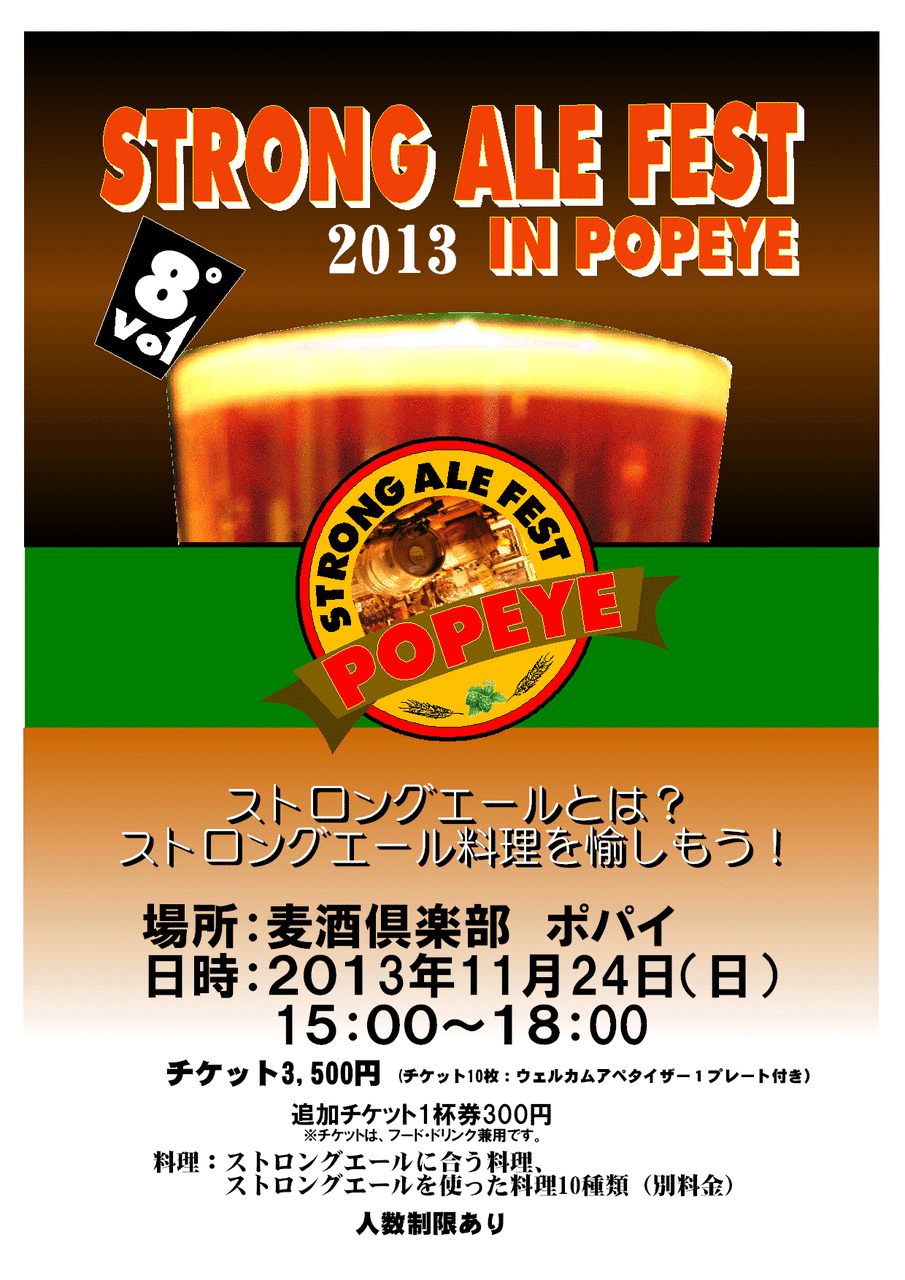 また11/24(日)には同じく「ポパイ」で「ストロングエールフェスティバル」が開催されます。