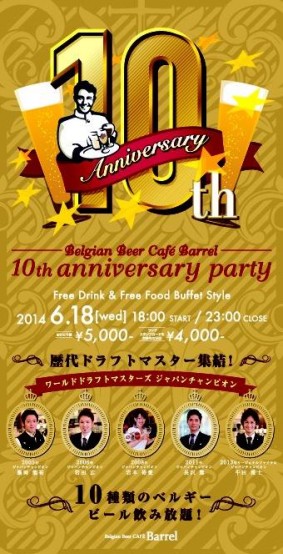 6/18(水)大阪「ベルジャンビアカフェ・バレル」で「10周年記念パーティー」開催