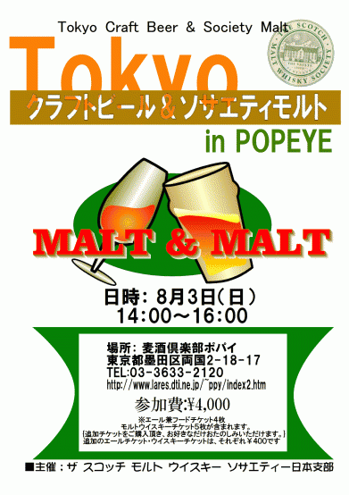 8/3(日)、Tokyo クラフトビール&ソサイエティモルト開催