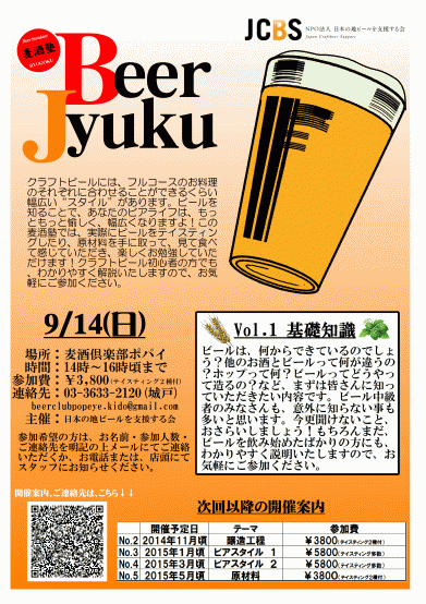 9/14、麦酒倶楽部ポパイで「麦酒塾 vol.01」開催