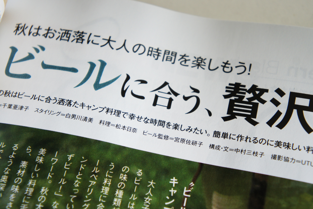 人気女性ファッション誌『In Red 11月号』に「秋はお洒落に大人の時間を楽しもう! ビールに合う、贅沢キャンプ料理」という記事が掲載されています。