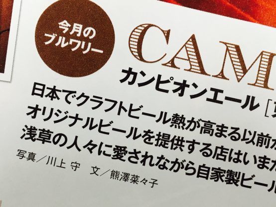 毎月恒例の「ブルワリー探訪ページ」に、ビアジャーナリストくまざわななこさんが寄稿しています。今月のブルワリーは、浅草のカンピオンエールさん!