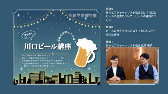 生涯学習課主催の「川口ビール講座」に、当会ビアジャーナリストの松原順子(MJ)さんが、第1回と第2回の講師として登壇しました。