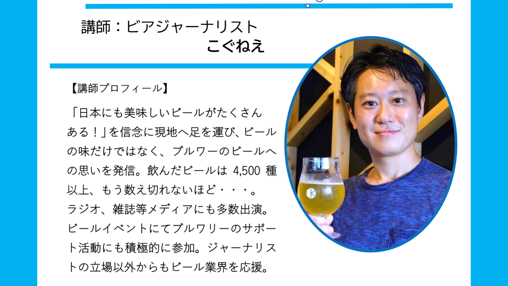 当会ビアジャーナリストのこぐねえ(木暮亮)さんが、神奈川県厚木市にある「厚木カルチャーセンター」にて、「ビール入門講座」の講師として登壇いたします。