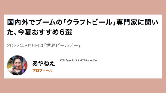 講談社 WEBサイト FRaU にて、当会ビアジャーナリストのあやねえさんが世界ビールデーにちなみ、今夏おすすめしたいビール6選を寄稿しました。